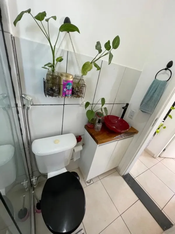 Banheiro social com armários e box blindex