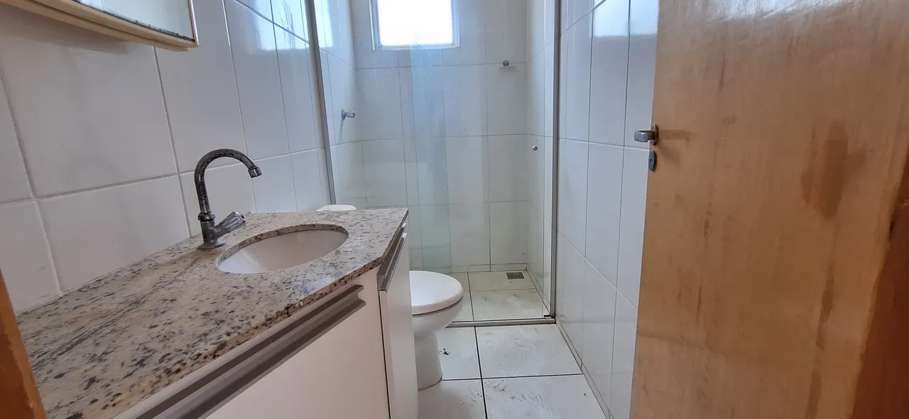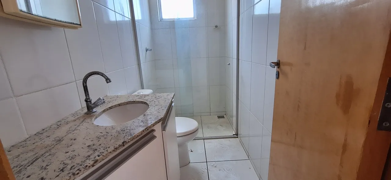 Apartamento à venda no bairro Paquetá, em Belo Horizonte, com dois quartos, sendo um deles suíte. Ambos os dormitórios possuem piso em cerâmica, assim como a sala ampla para dois ambientes. O banheiro social conta com bancada em granito. A varanda foi incorporada à suíte, ampliando o espaço. O imóvel possui armários planejados na cozinha, banheiro e dormitórios, além de duas vagas de garagem paralelas, medição individual de água e gás. O prédio oferece elevador, salão de festas e fachada com revestimento em pastilhas e textura. Está localizado em uma rua arborizada, com fácil acesso e vagas de estacionamento para visitantes.