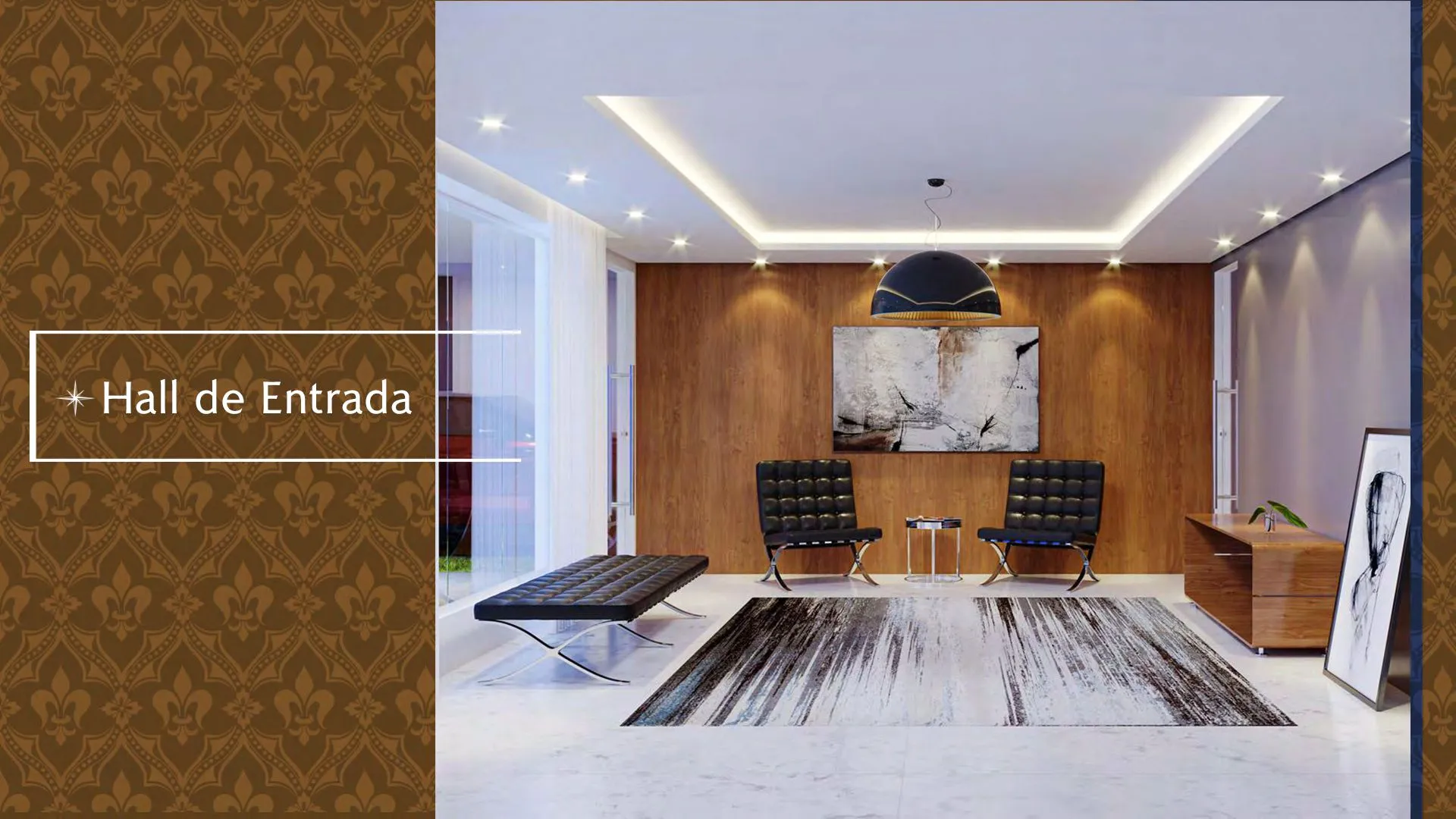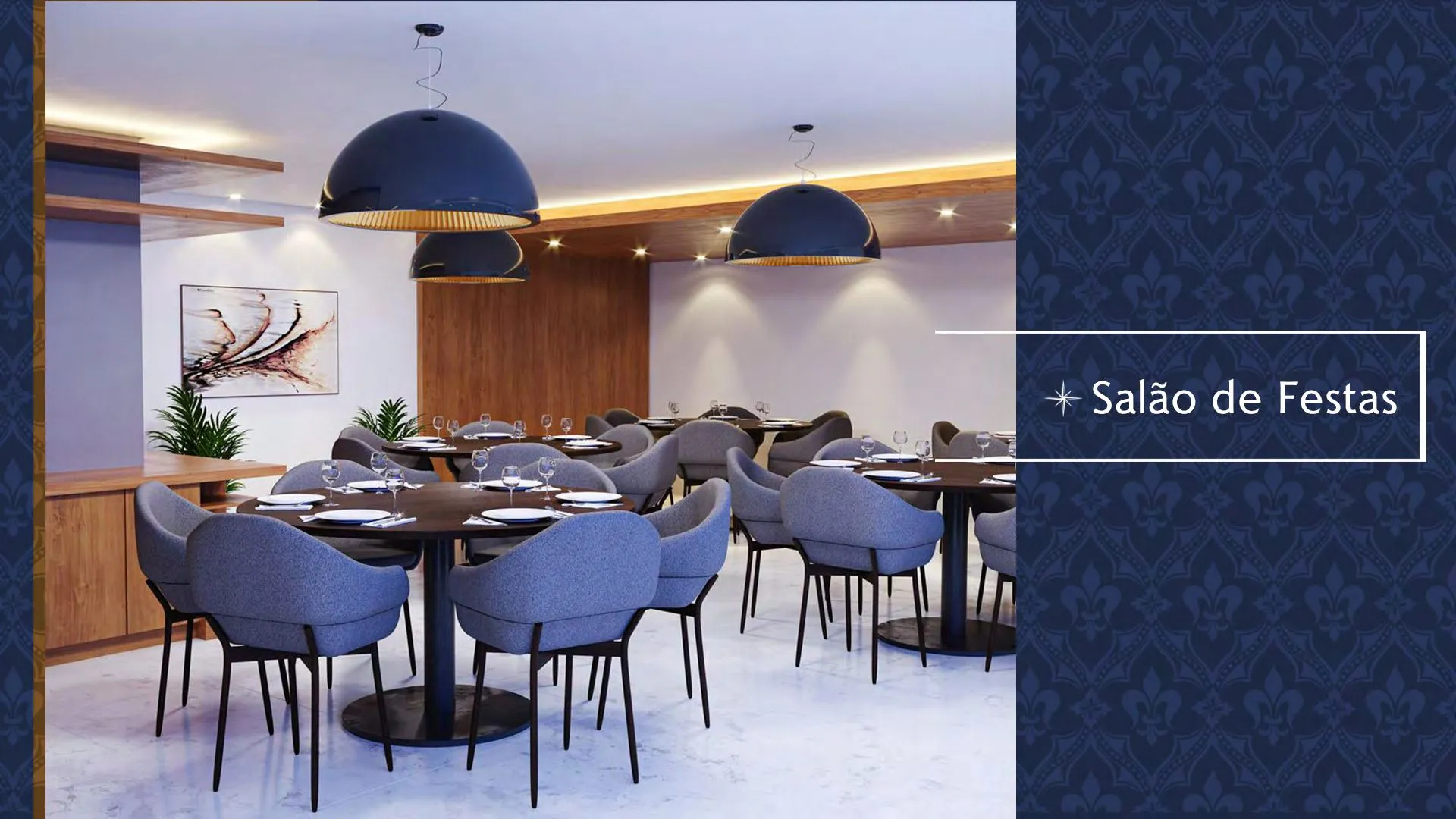 Sala social ampla com varanda