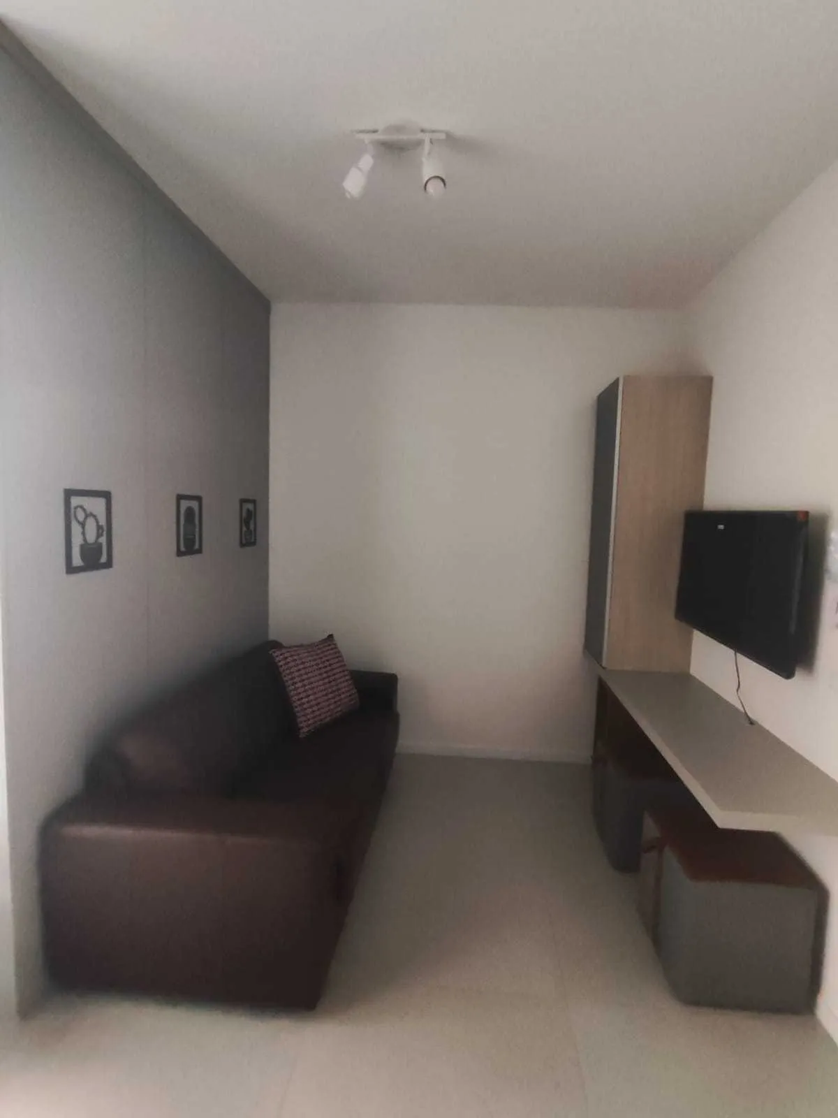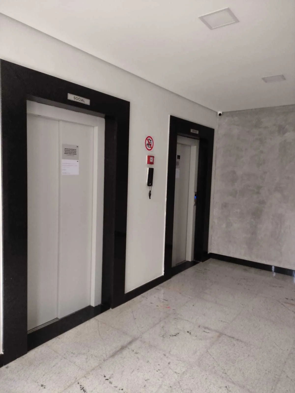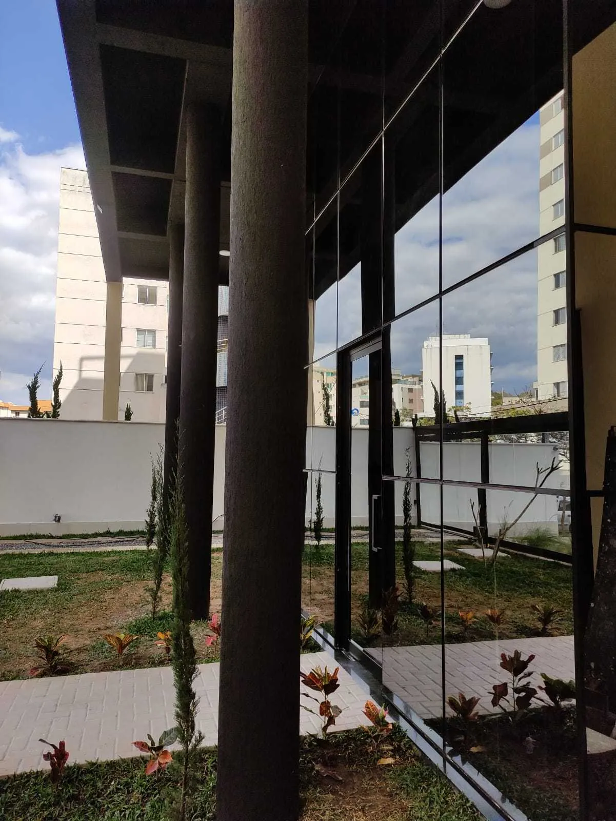 Apartamento mobiliado de 1 quarto para alugar no bairro Ouro Preto, em Belo Horizonte, próximo à UFMG e à divisa com o bairro Castelo. O imóvel possui cama box baú de casal com colchão densidade 33, ar-condicionado, armários embutidos, painéis, rack, sofá-cama, luminárias e televisão. A cozinha é planejada, equipada com armários superiores e inferiores, fogão elétrico, micro-ondas, geladeira e utensílios domésticos. O banheiro social conta com box blindex, armários, espelho e chuveiro. O prédio é individual, dispõe de dois elevadores (social e de serviço), vaga de garagem coberta, lavanderia, terraço coletivo, salão de festas, espaço gourmet e jardim. Oferece ainda sistema de alarme e monitoramento com circuito interno de TV, interfone, portão eletrônico, água individualizada e zelador, além de permitir animais de estimação.