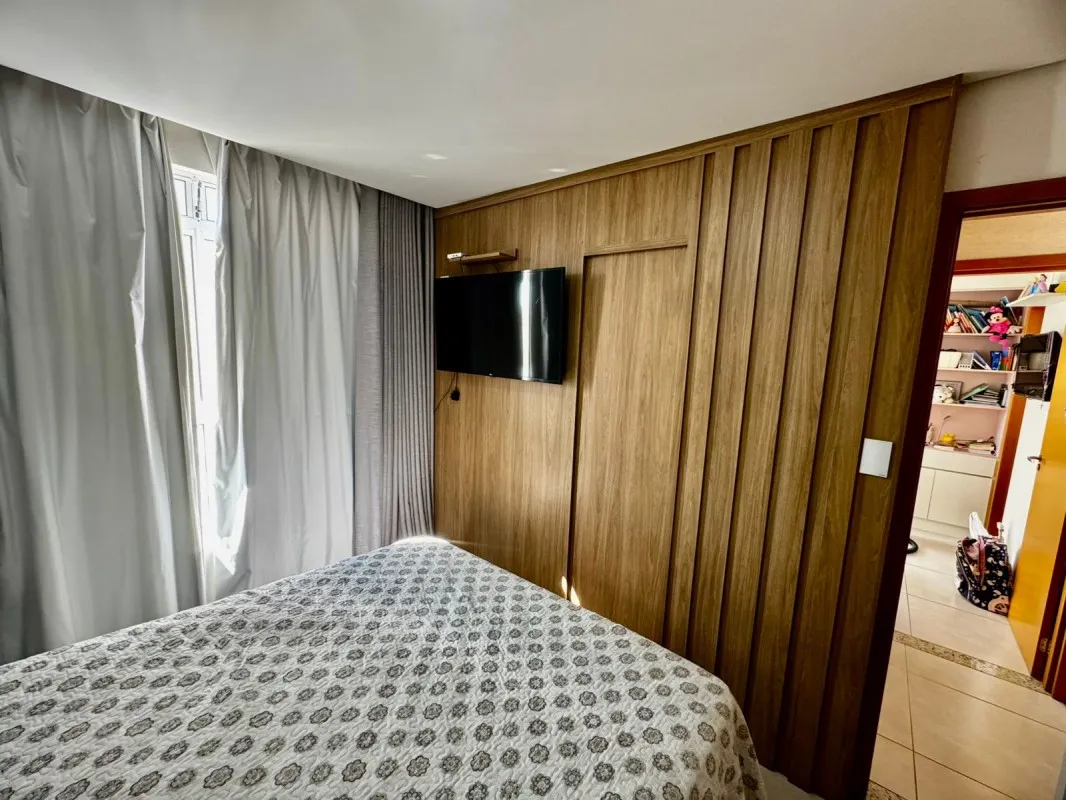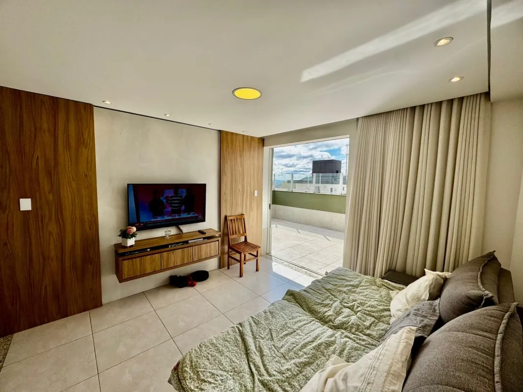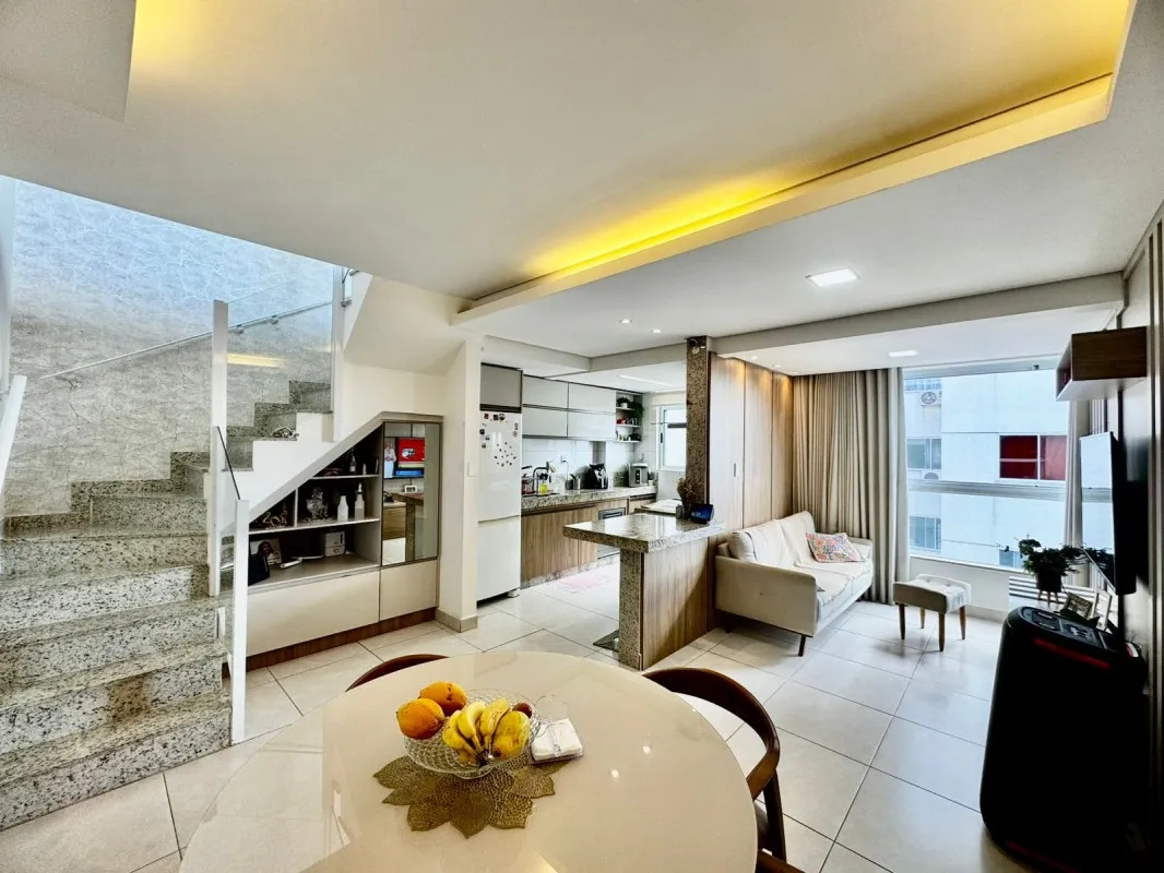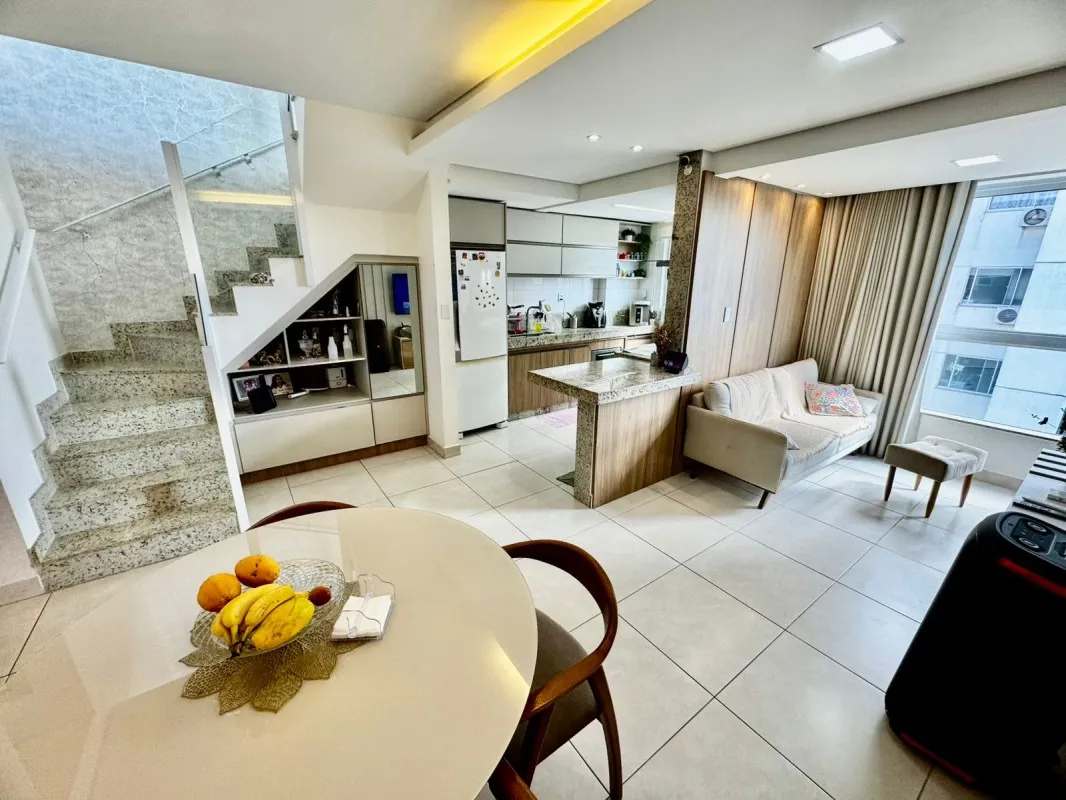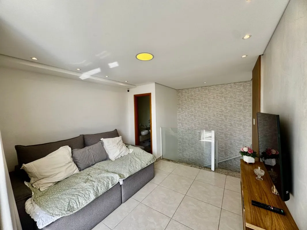 Cobertura à venda no bairro Manacás, com 155 m² e vista definitiva para a Serra do Curral. O prédio possui elevador e sistema de iluminação automatizado por comando de voz (Alexa). No primeiro pavimento, conta com 2 quartos, ambos suítes com armários planejados e rebaixamento em gesso, sala ampla para dois ambientes com acabamento em gesso, cozinha em conceito aberto montada com armários, cooktop e coifa, além de escada em granito de alta qualidade. No segundo pavimento, há uma sala de TV espaçosa com porta em blindex e rebaixamento em gesso, lavabo com bancada em granito e espelho, área gourmet planejada com armários e cobertura em telha sanduíche, ampla área externa em L e lavanderia separada. A garagem possui 2 vagas paralelas, livres e demarcadas sob pilotis, com capacidade para até 3 carros. Localização privilegiada, próxima a comércios e serviços, com documentação pronta para financiamento. Valor: R$ 719.000,00.