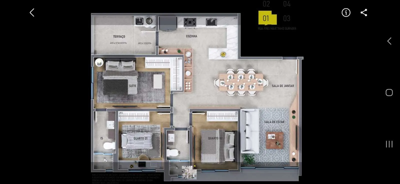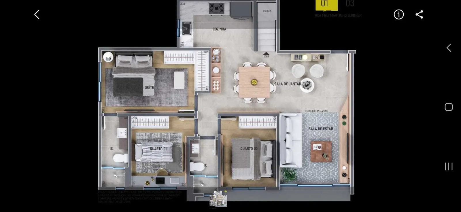 • 3 quartos, sendo 1 suíte