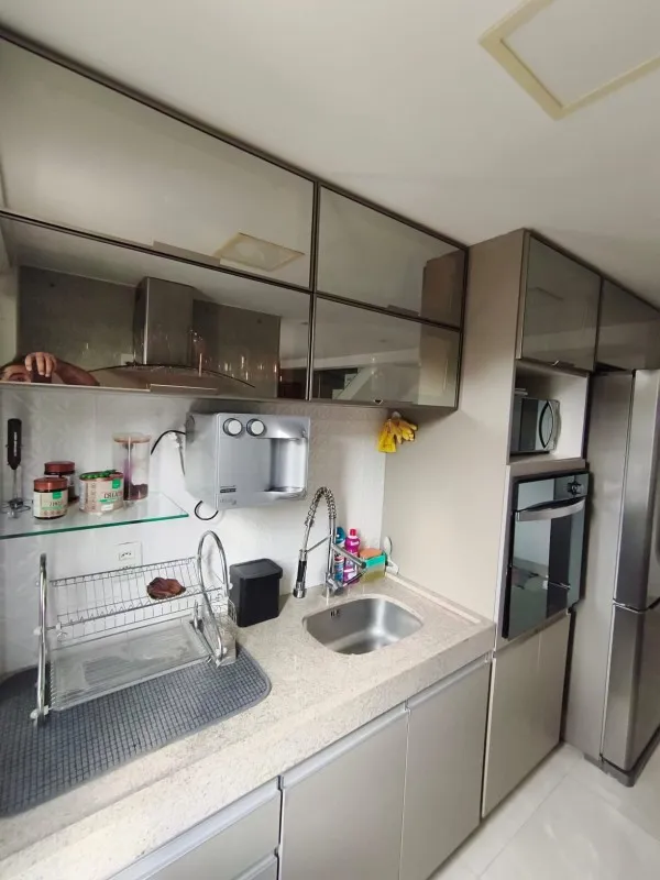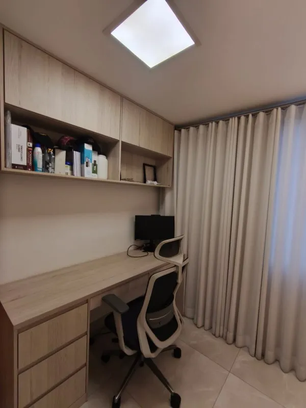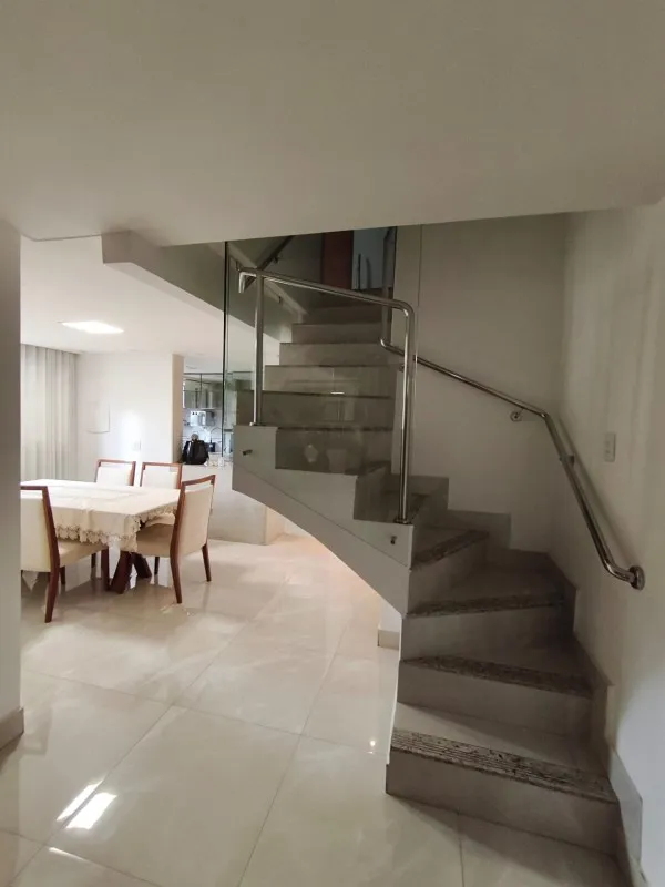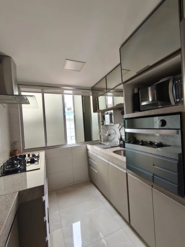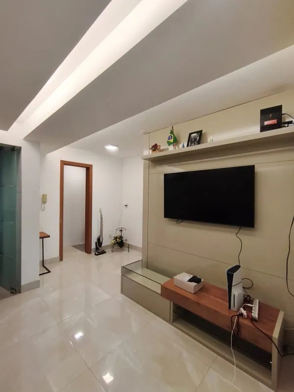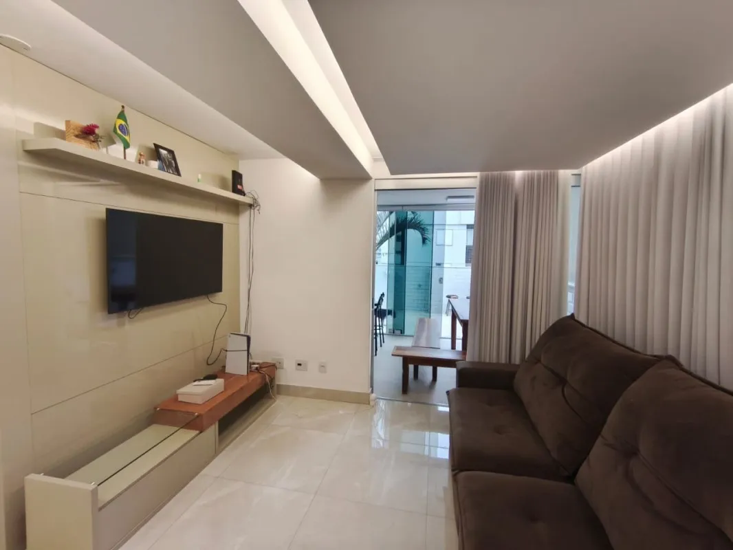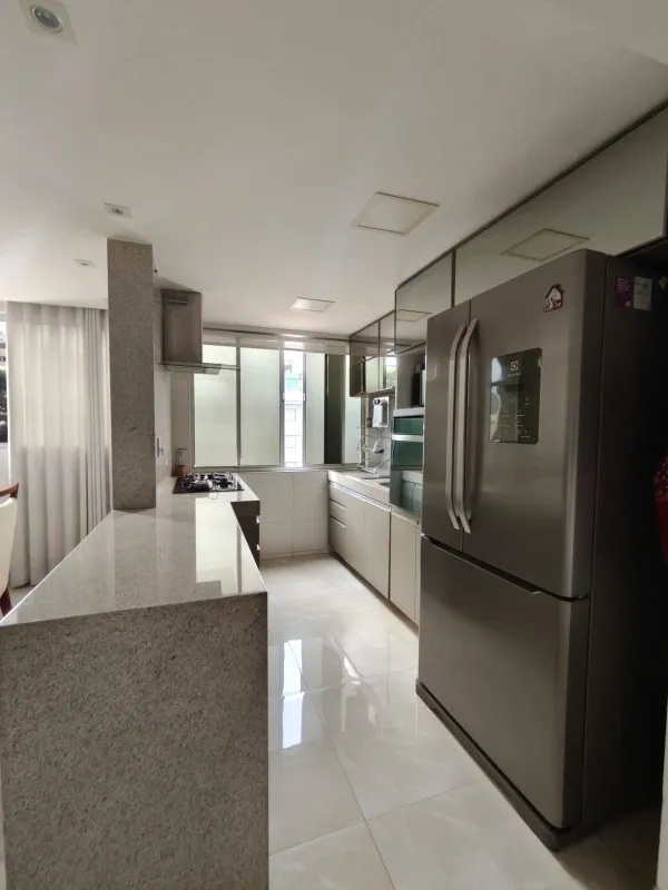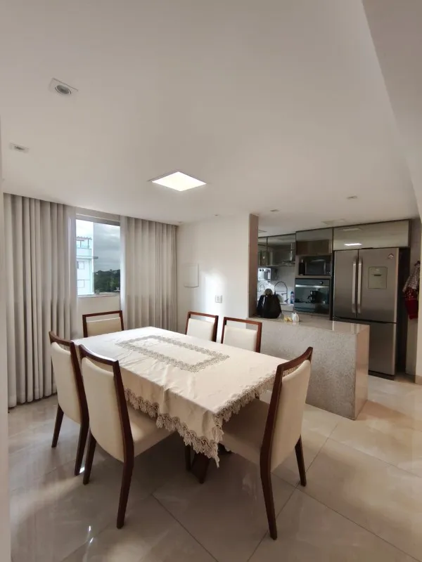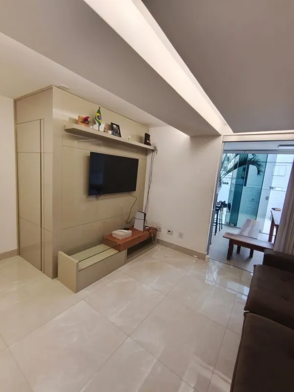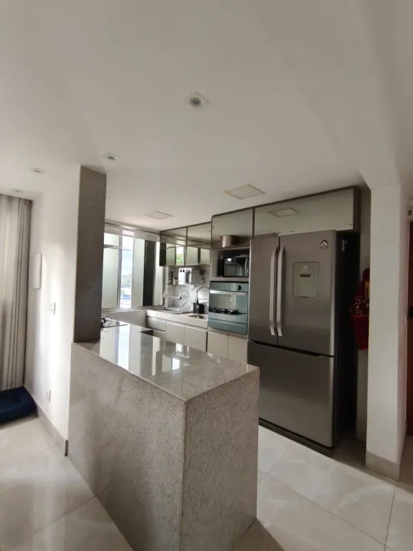 Cobertura disponível para venda no bairro Castelo, em Belo Horizonte. O imóvel possui dois quartos, incluindo uma suíte, além de sala de jantar, sala de TV, cozinha americana com armários planejados, banheiro social, lavabo e área gourmet com churrasqueira no terraço. Todos os ambientes contam com armários sob medida e acabamento em porcelanato. A unidade oferece duas vagas de garagem cobertas. O edifício é totalmente revestido e está localizado em uma região residencial com boa infraestrutura, próximo a comércios, escolas, áreas verdes e com acesso facilitado às principais vias da cidade.