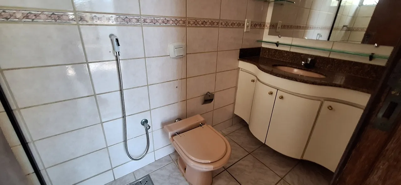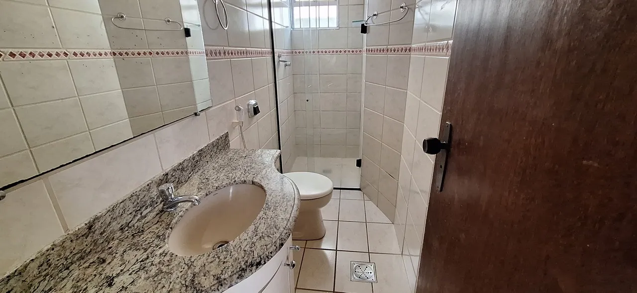 Banheiro social: Conta com bancada em mármore, destacando o cuidado com os acabamentos e a qualidade do imóvel.